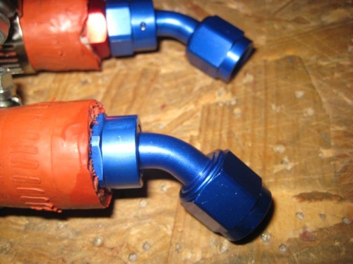 The hoses are actually not new. But I shortened them slightly, and replaced one end of each with 45 deg fittings, to try to get a better routing of the hoses. I think the oil leak I had last week was due to a cracked fitting.
