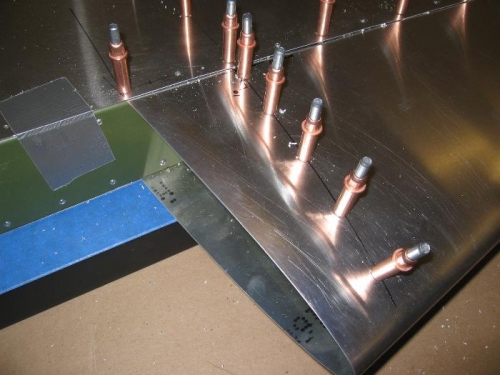 Layout and drill leading edge skin at nose rib.
