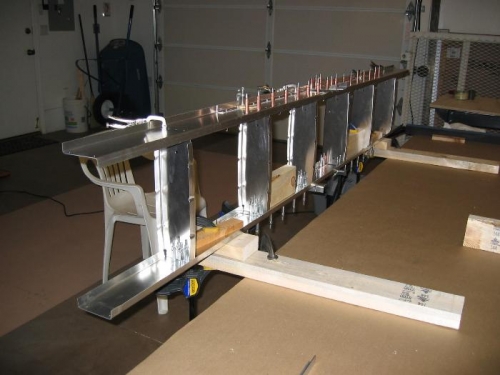 Stab is ready to disassemble, debur Zinc Chromate, reassemble, rivet.First snow of the season.