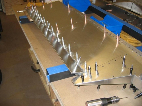 Pilot holes in Trim Tab. Fitting and checking for flat, alignment and spacing. Looks good.