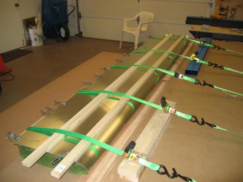 Set up top skin for closing with straps and clamps.