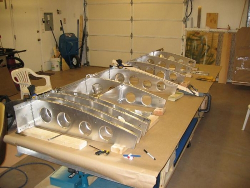 Notched the Nose Ribs for both wings today.Finished pilot drilling stiffners.Finished both Rt and Lf wing aileron bellcranks on RR #7