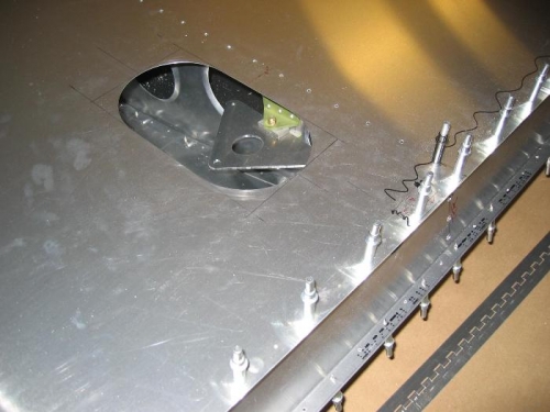 Back from 2 weeks of flu, and recovery. Now to figure out where I left off.Measure and cut-in inspection hole for aileron bellcrank.Note to ZAC on clarifying dim. of flap hinge centerline at 8mm. ?