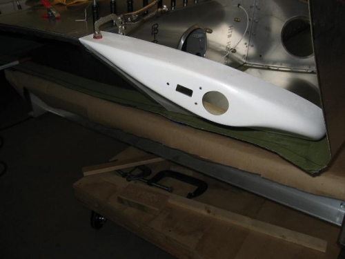Route wiring to wing tip in PVC.Mark and cut both fiberglass wing tips for Nav/Strobe lights.Rivet in right wing tie-down.