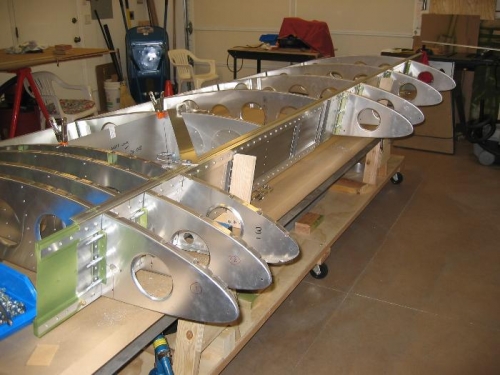 RR # 1-9 re-attached with clecos.Check for straight and level.Rivet RR # 1-9 in place to main and rear spar.Pilot drill Nose ribs.