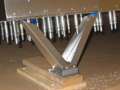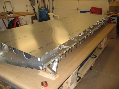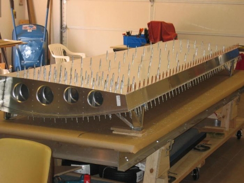 Position Rear bottom skin.Pilot drill rear spar and RR# 1-9.Fit pitot tube to mast. Filing a little material at a time. Common fit problem when using different vendors.