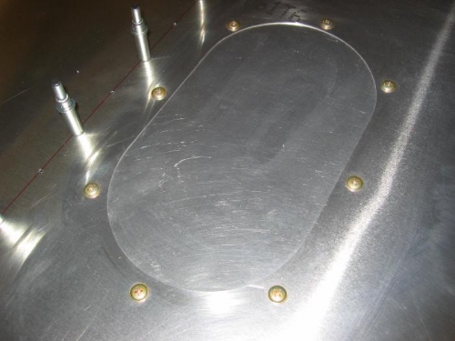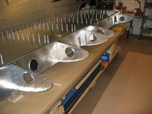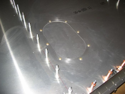 Finish inspection panel for bellcrank.Locate and drill holes for nutplate fasteners.Rivet nutplates on cover.Cleco nose ribs back on.