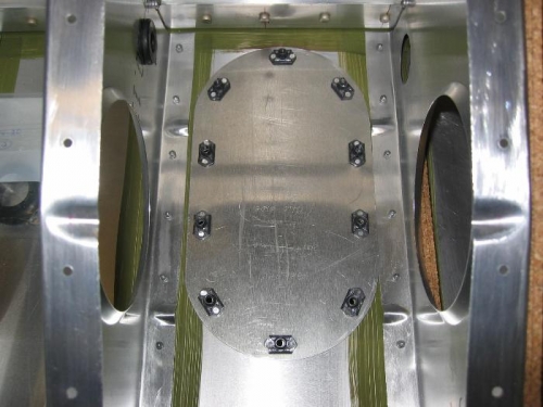 Rivet "nutplates" on inspection cover for fuel sender and filter.