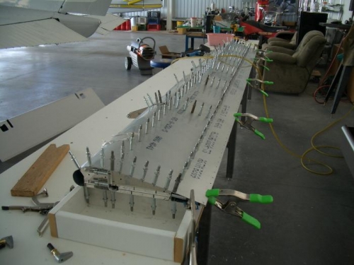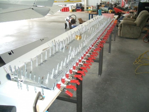 All fitted and drilled! It pays to have lots of spring clamps to keep the trailing edge straight and keep the wedge from slipping when you drill it.Even test fitthe flap in wing, it all fit and looks great, especially when compared to my Cessna 182!