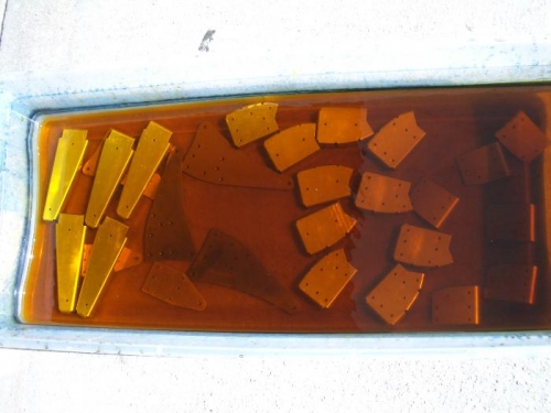 Finish dimpling, alodine and prime with zinc chromate primer.