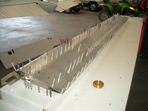 Finished drilling starboard flap drilled out the 1/8" hole for the cherrymax rivets. Ready for deburr and dimpling.