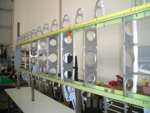 Drilling out main ribs and cove ribs out to .128 When drilling these out you have to line up holes and then align them with both the top and bottom of the spars, seems like the pre drilled locating holes are not really where they are supposed to be! Also riveted the inboard aileron bearing mount with flush #4's countersunk so the aileron bellcrank will sit flush when it gets mounted.