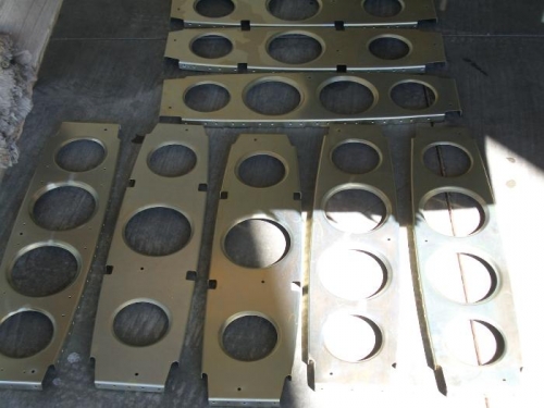 Clean, etch, and alodine all the ribs and other parts. Finished dimpling the nose skins. Riveted the nut plates on the access cover rings.