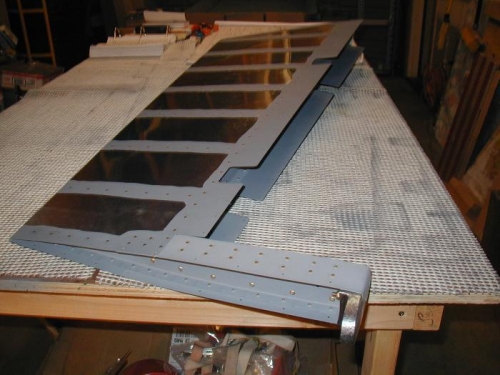 Completed riveting the right Elevator. First added a chewing-gum size amount of RTV inside the leading edge where each of the stiffeners meet. Shaping of the counter-balance weight to match the contour of the skin was next. Then clecoed the skeleton inside the right Elevator skin and began riveting. The riveting was slow going but it could not be rushed. Almost all of the riveting was done by the hand squeezer, not the air tool. There is still some followup for the right Elevator but that will come after the left Elevator is completed. On to the left Elevator!