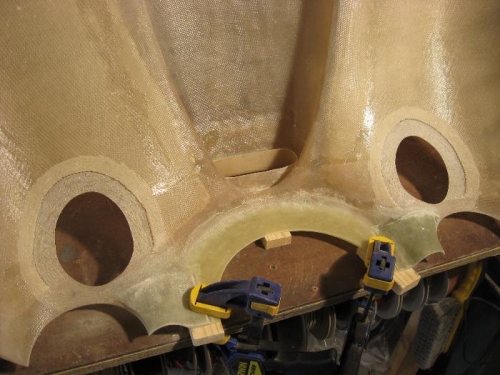 Removed the honeycomb in prep for glassing the vent areas. Spent some time at the hardware store gathering materials to make a mold for the 4" round vents.