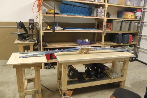 Put relief notches into the two front spars. The first one was a little crappy but then I figured out that the drill press would help. I really needed a centerpunch. Mark had a great idea about bending the tabs down and drilling before cutting them off. That worked great. The dremel with a cutoff wheel worked great for cutting. Then I bent the angles on the front spars. Clecoed it all together. Time to countersink the doublers but I need to pickup some scrap.
