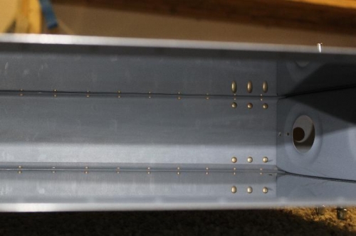 Pete Decrane came over to show Mark and I how to rivet the skins. I was kind of dreading this after my initial practice with the rivet gun but it turned out not to be too difficult.