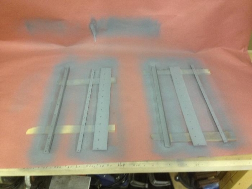 Started fabricating seat adjustment hardware. Drilled in place, deburred, primed.