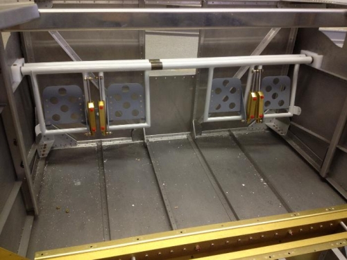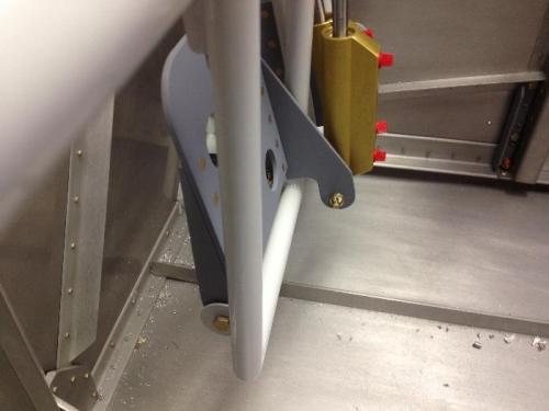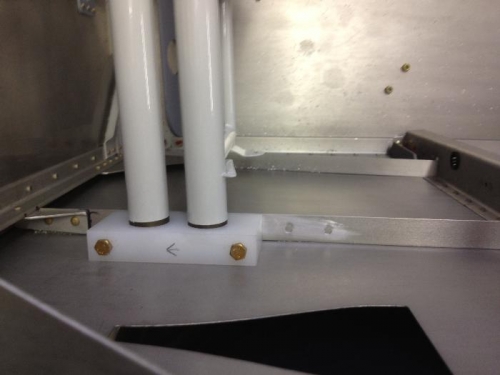 Continued mounting everything with the rudder pedal assembly. Drilled nylon blocks. Drilled to fuse. Mounted. Ready to work on center brace.