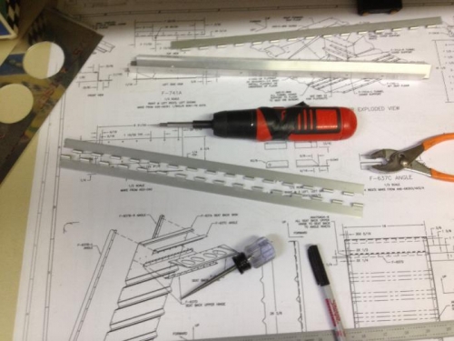 Drilled angles. Matchdrilled to seat backs. Matchdrilled hinges. Left seat is clecoed.