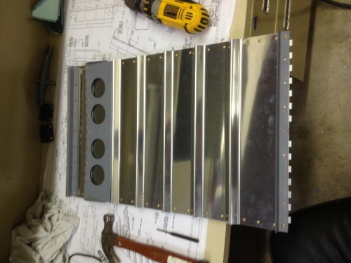 Edge finish, deburred, primed, riveted. Used c-from with 470 set, rivet gun with backrivet set to do interior rivets.