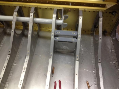 Used measurements from online to locate the placement of the brackets forward and aft. Setup the gap to 5/16 for the harnesses. Drilled bushing in harness to accept AN5 hardware.