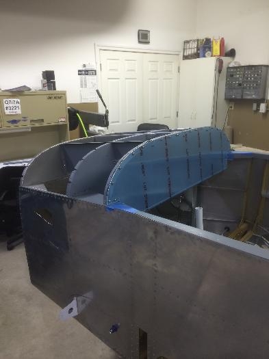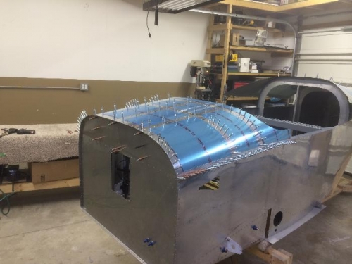 I riveted the structure for the front deck. It is not riveted to the fuselage however so that I can still remove it. I also worked on rolling the edges of the top skin so that they sit tight to the fuse.