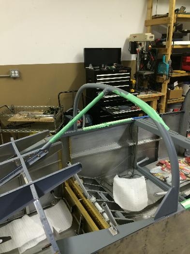 Made shims for roll bar base. Bolted roll bar. Worked on front brace and drilled.