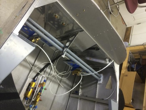 Made another antenna doubler plate for a second com. Put rudder pedals in second position. Setup nylon tubes on rudder cables.