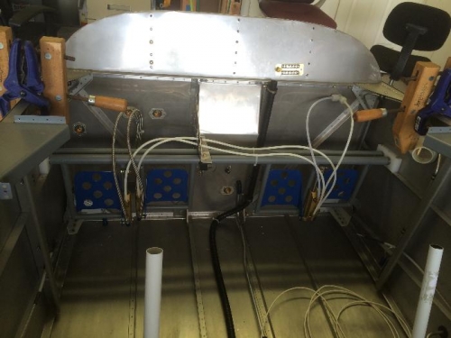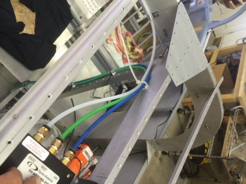 Finished brake lines on rudder assembly. Drilled ground block on firewall. Prepped for conduit run up firewall. Drilled in transponder mount. Temp mounted adahrs so i could cut static lines. CS slide rail for the canopy.
