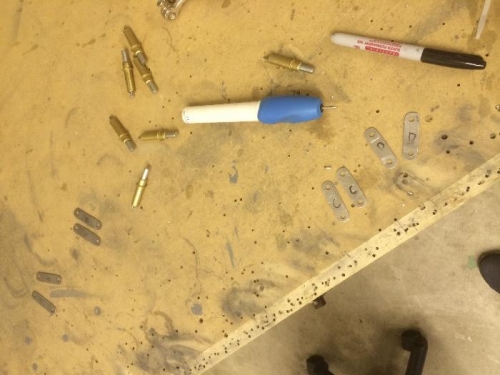 Mounted vertical and horizontal. Drilled hole through vertical and fuse for tail light wiring. Installed rudder. Started making attach brackets for rudder pedals. Set of 1.5" and 1.25"