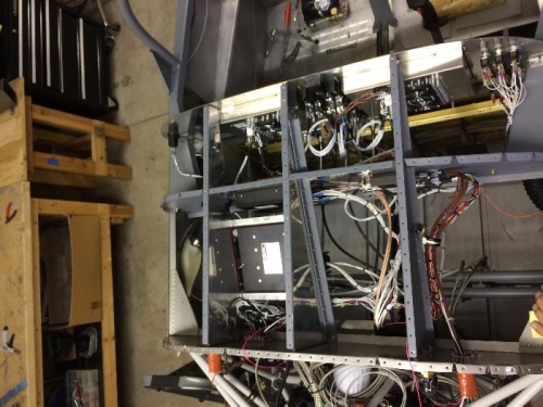 Installed center tunnel pushrod. Drilled holes for fuel sender wiring.