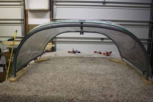 I made the big cut on the canopy. Pretty uneventful. I ended up using my drill with the wheel.