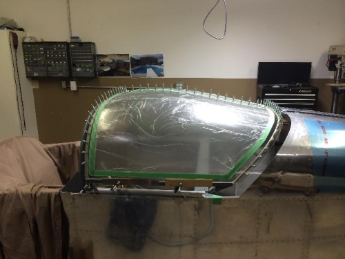Drilled #40 holes in bubble/frame. Clecoed on. Slides nicely.