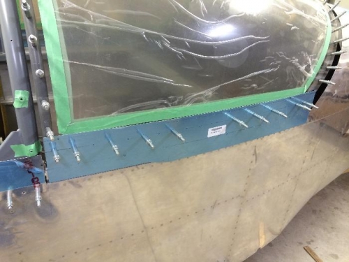 Fabricated side skirts. Drilled into frame. Worked on the relief cut that allows clearance of the fuselage.