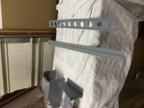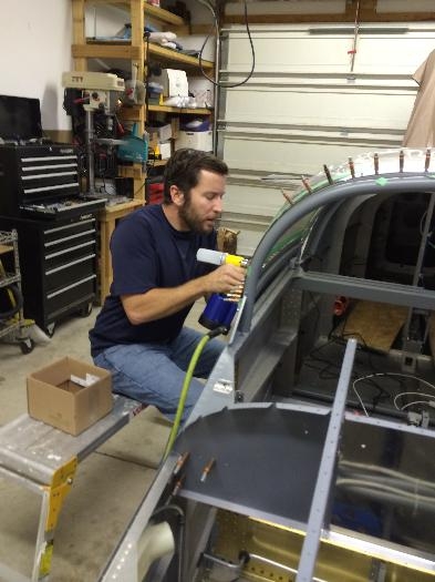 Painted some of the canopy parts. Assembled canopy. Mounted canopy handle with nylon washers and temp screws. Riveted canopy skirt brace. Used new pnuematic rivet puller which is very cool.