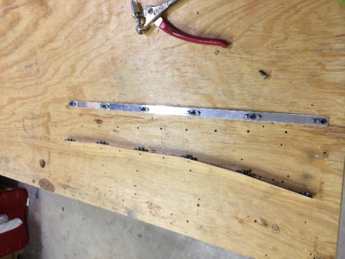 Put canopy upstairs. Disassemble the slide rails. Sanded and washed them. Installed a couple nutplates that were missing for the slide rail. Put some clearance cuts into the aft skin.