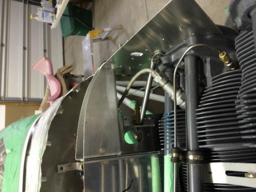 Trimmed front of baffles. Started back on oil cooler with my extra alum order. Made angle support from chromoly tube to run inboard of baffle to jug.