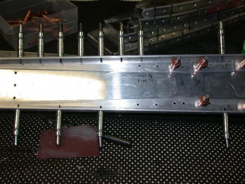 There are no rivets on the spar cap (except on the sides) above the middle rudder hinge. Why? Spoke with Van's and said you could add them if you desired. Look at picture #1 you will see I added two rivets above the middle rudder hinge on both sides. A total of 4 rivets. You have the edge distance if you want to add them and I feel it would add strength to the middle rudder hinge.