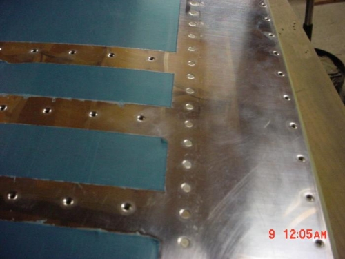 STARTED RIVETING INBOARD LEFT BOTTOM SKIN. RIVETED 21 RIVETS ON REAR SPAR. VERY HARD TO GET TO!