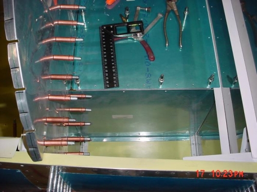 FINISHED DRILLING FOR NUTPLATES COUNTERSUNK FOR RIVETS AND INSTALLED MOST OF THE PLATENUTS.