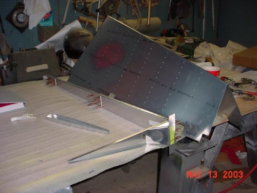 RIVETED SKIN TO SKELETON OF VERTICAL STABLIZER. FINISHED VERTICAL STABLIZER.