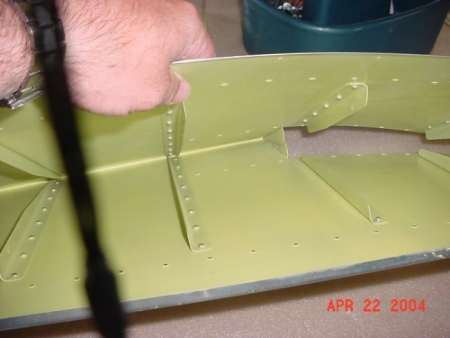 PLACED SKELETON AND SKIN BACK IN JIG AND RIVETED SKIN TO SKELETON.