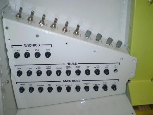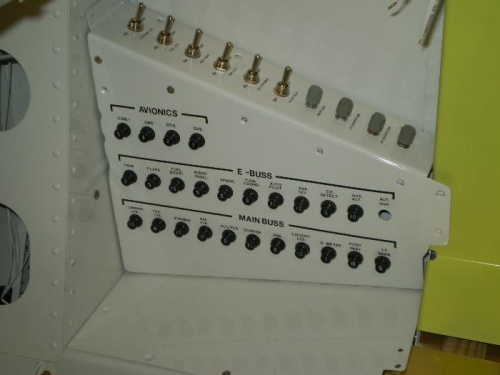 LABLED RIGHT CONSOLE SWITCH PANEL AND BUSS PANEL.