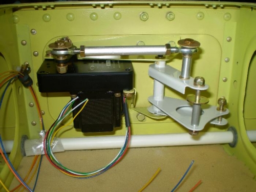 MOUNTED ROLL SERVO IN RIGHT WING DRILLED BELCRANK FOR SERVO ARM.
