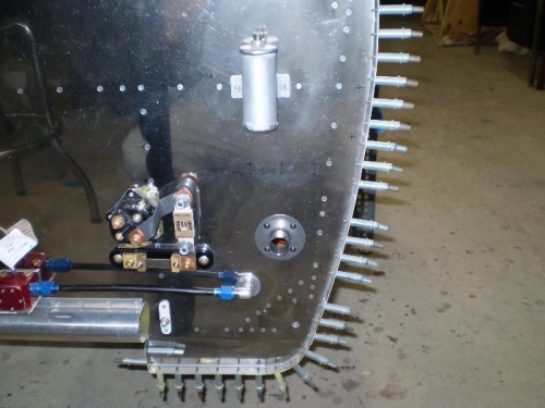DRILLED 1 1/8 HOLE IN FIREWALL FOR BATTERY CABLE AND OTHER WIRES ON THE LEFT SIDE.