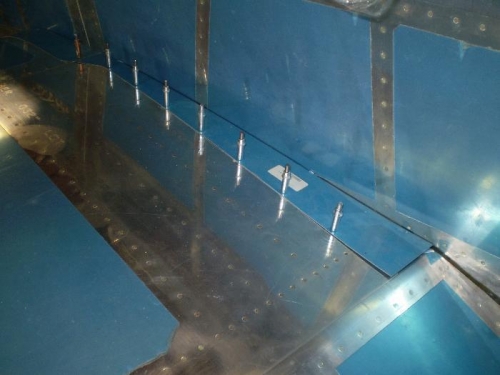 STARTED FITTING WING FAIRINGS AND FIT LEFT FLAP TO BOTTOM OF FUSELAGE.