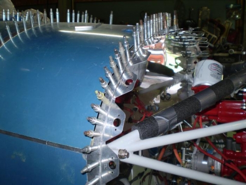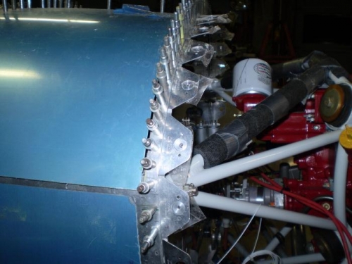 FITTED AND DRILLED SKYBOLT V LOC FLANGES TO FIREWALL.