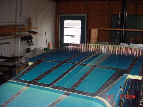 STARTED RIVETING F827 AND F828 BOTTOM SKINS.