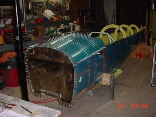 ALIGNED F821 PP UPPER FRONT SKIN AND DRILLED TO F801 FIREWALL AND TO F866 BULKHEAD. ALSO MATCHED DRILLED SKIN TO F887 LONGERONS. STARTED ON INSTRUMENT PANEL SUB PANELS BY MATCH DRILLING ATTACHMENT STRIP.